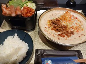 「韓流女子SET」   濃厚担々麺 特注の細麺を使用  セットには、「サムギョプサル」が付いてます。