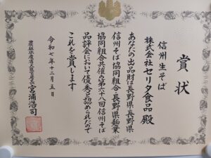 第68回長野県そば品評会 農林水産大臣官房長賞受賞