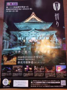 今月 善光寺にて、恒例の 「灯明祭り」が、2月20日(金)~2月23日(月)(天皇誕生日)に開催されます